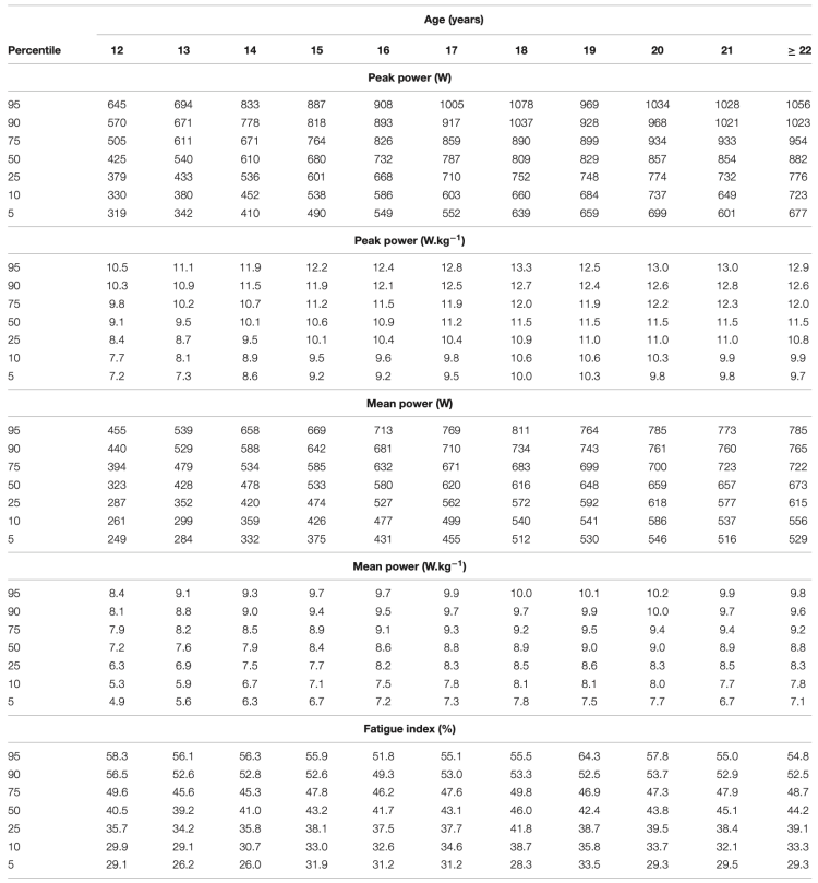 - Coppin E, Heath EM, Bressel E, Wagner DR. Wingate anaerobic test reference values for male power athletes. Int J Sports Physiol Perform. 2012;7(3):232-236. doi:10.1123/ijspp.7.3.232